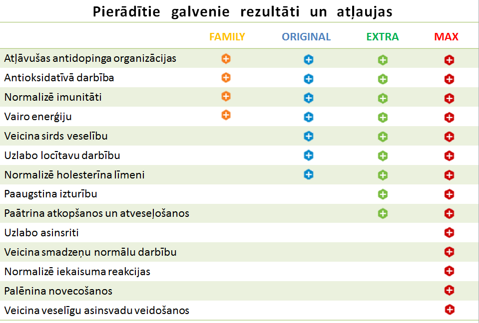 Vairāk informācijas par katru no bioaktīvo dzērienu veidiem atradīsiet saitēs: MAX, Extra, Pure, Original, Family.